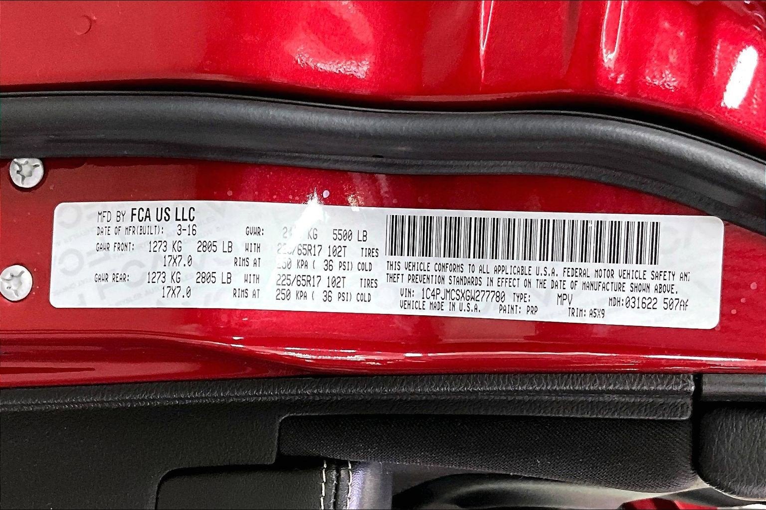 - Front Tire Size: P225/65TR17