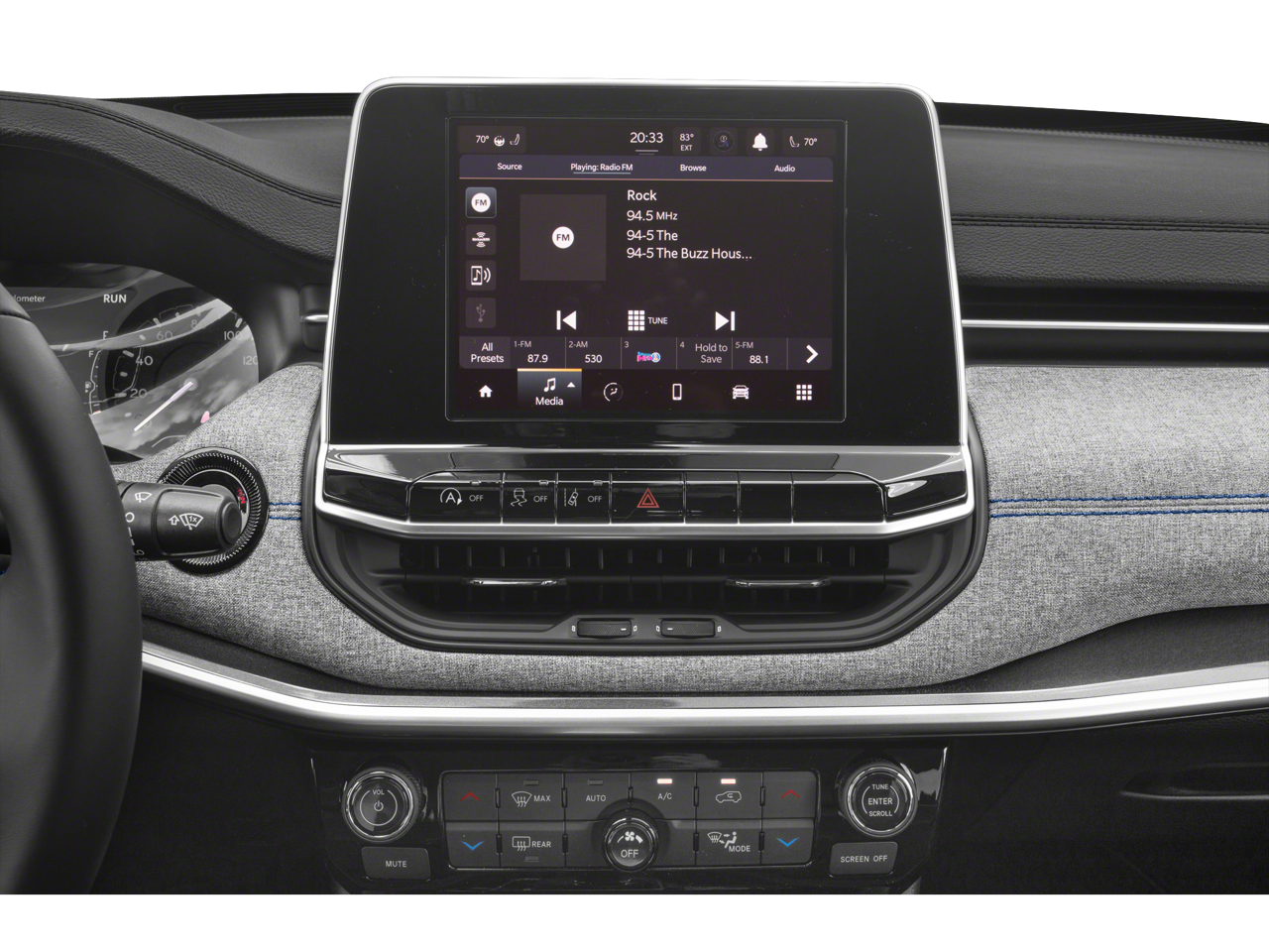 - UConnect 5 w/Seek-Scan, Clock, Aux Audio Input Jack and Steering Wheel Controls