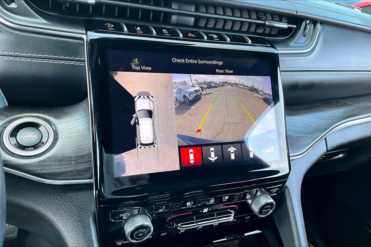 Additional highlights include Quadra Lift air suspension, Selec Terrain drive modes, heated and ventilated front seats, heated second row seats, heated steering wheel, hands free power liftgate, adaptive cruise control with stop and go, blind spot monitoring, Apple CarPlay and Android Auto, Uconnect navigation with a large touchscreen display, premium 19 speaker audio system with 950 watt amplifier, and 20 inch aluminum wheels.