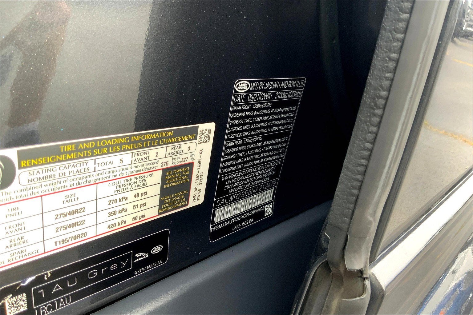 - Rear Tire Size: P275/45YR21