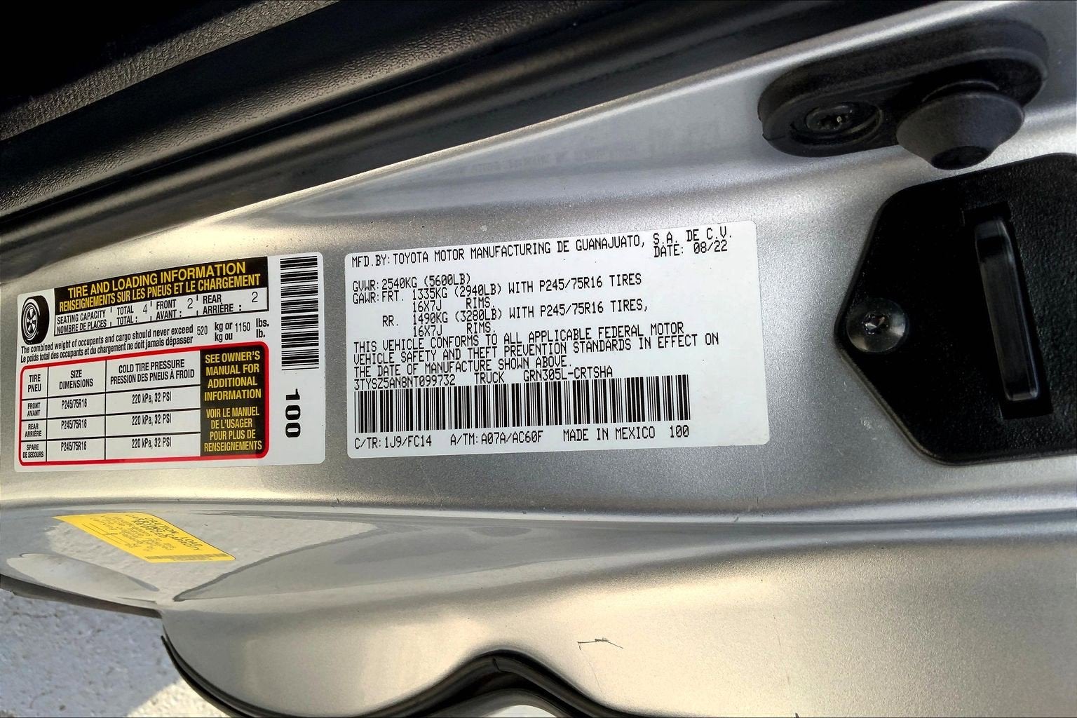 - Front Tire Size: P245/75SR16
