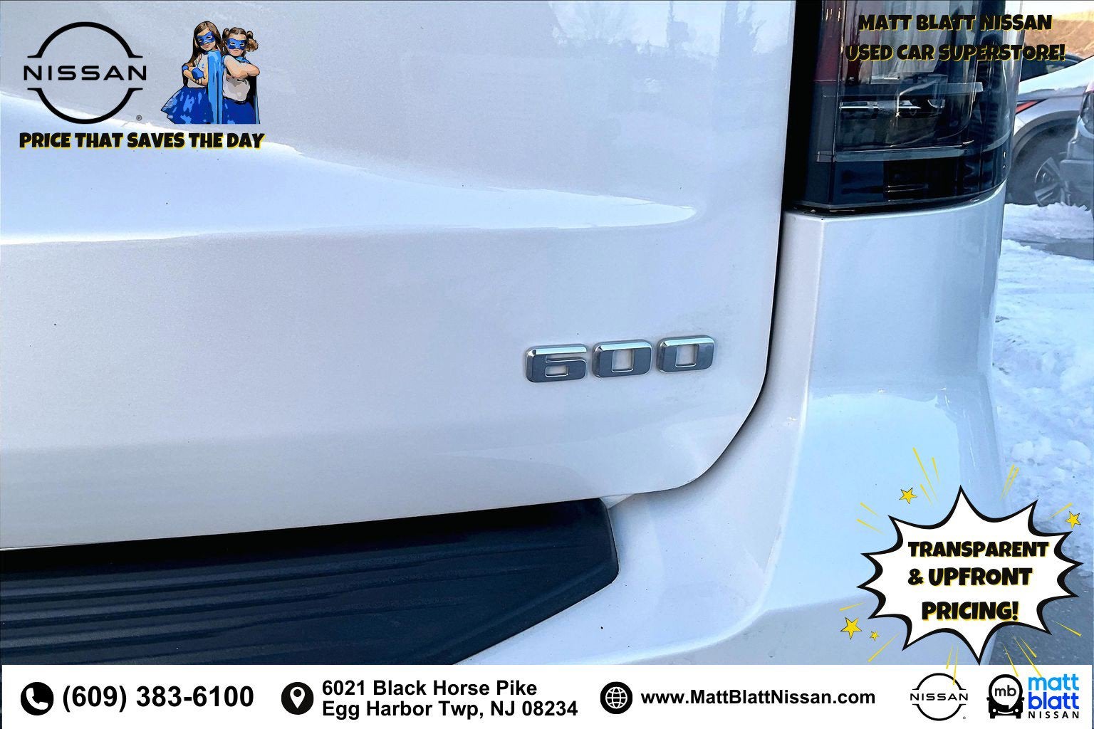 Matt Blatt has been serving New Jersey, Pennsylvania, Delaware, and New York for over 30 Years! Matt Blatt NISSAN is fully committed to maintaining a customer-first approach. Our team of professionals is dedicated to keeping the process quick and easy, putting YOU in control of the whole experience. We look forward to providing you with the finest vehicles and services! Buy with confidence knowing this vehicle has earned its place in our inventory by passing our rigorous multi-point inspection and reconditioning process by our 100% Certified Technicians and it is ready for many miles of reliability and comfort. TRANSPARENT & UPFRONT PRICING WITH NO HIDDEN FEES. We are constantly updating and strategically pricing our inventory to make sure you get a great price without having to be a great negotiator. Carfax is available free of charge on all of our vehicles.