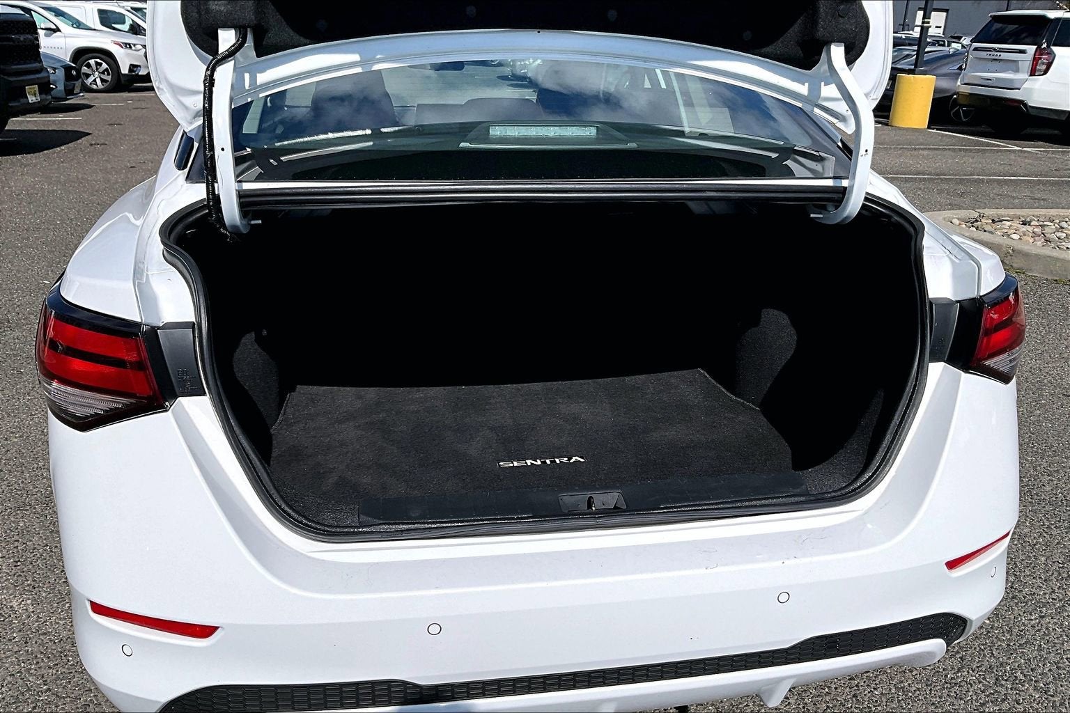 The Sentra's exterior boasts a striking White paint color, complemented by a stylish and aerodynamic design that turns heads wherever you go. Step inside and you'll be greeted by a well-appointed interior featuring premium cloth seating, a spacious cabin, and a host of advanced technology features, including: