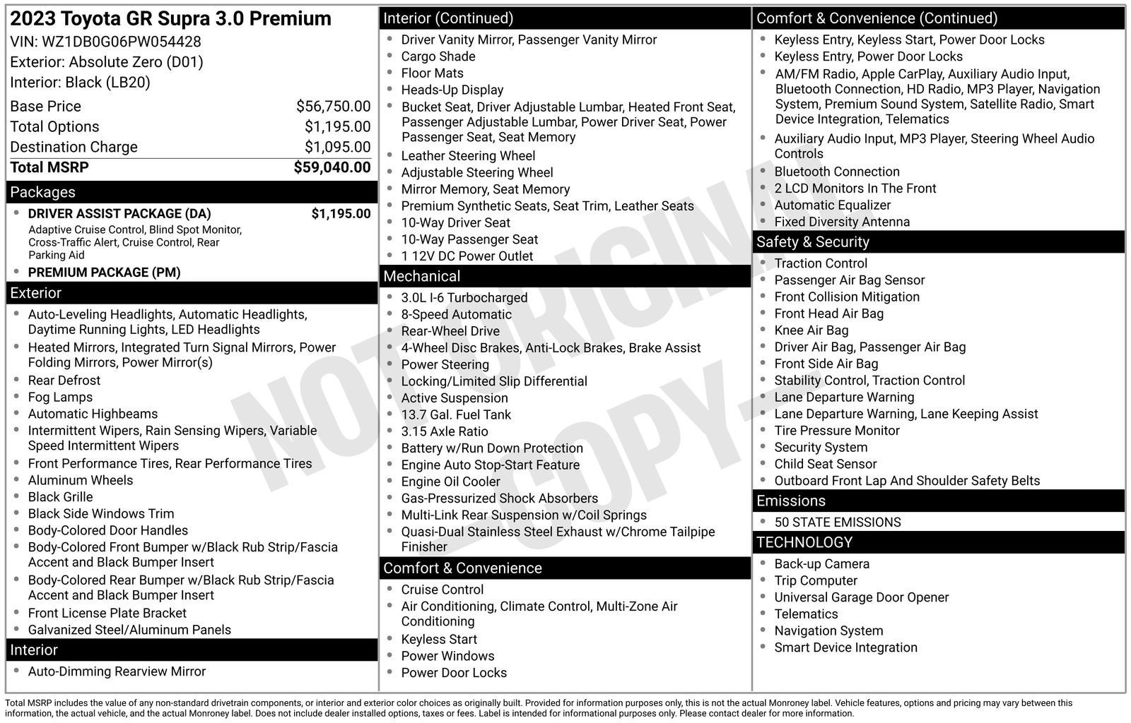 - Vehicle Name: Toyota GR Supra