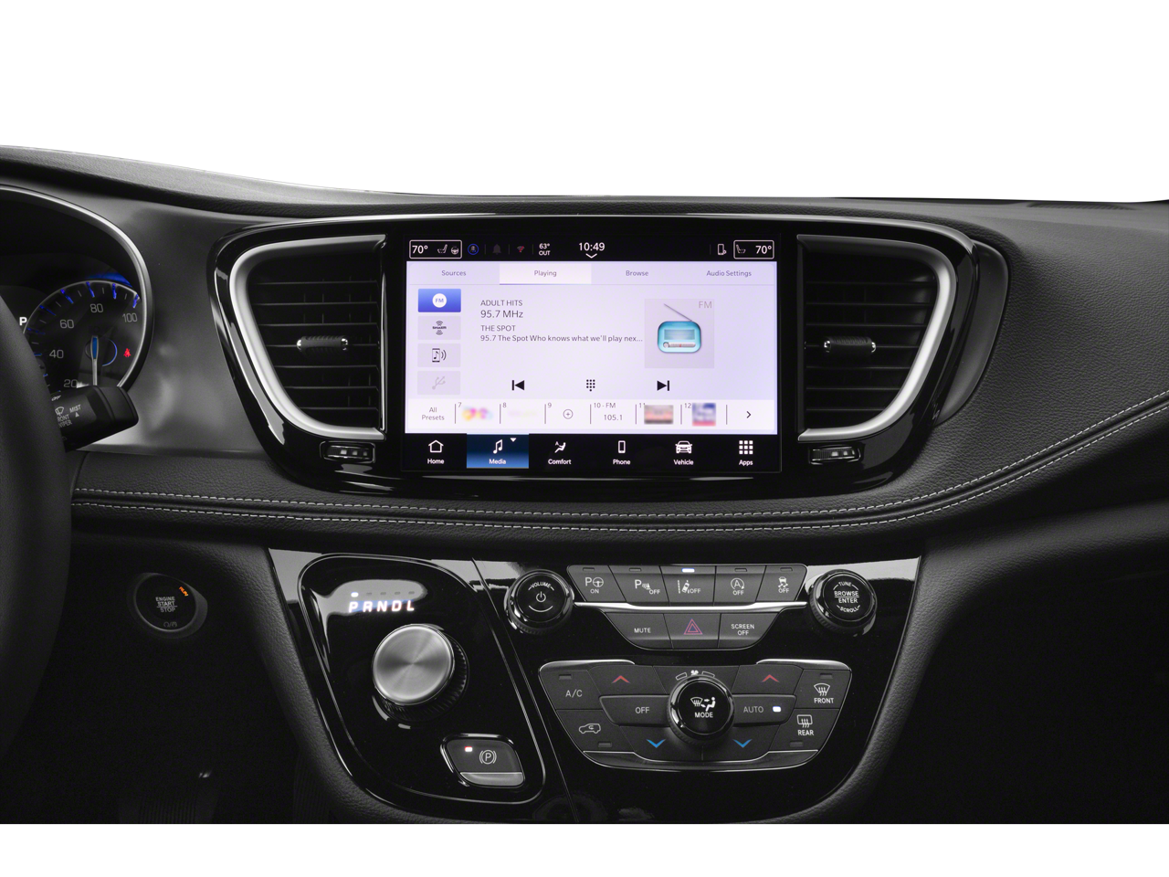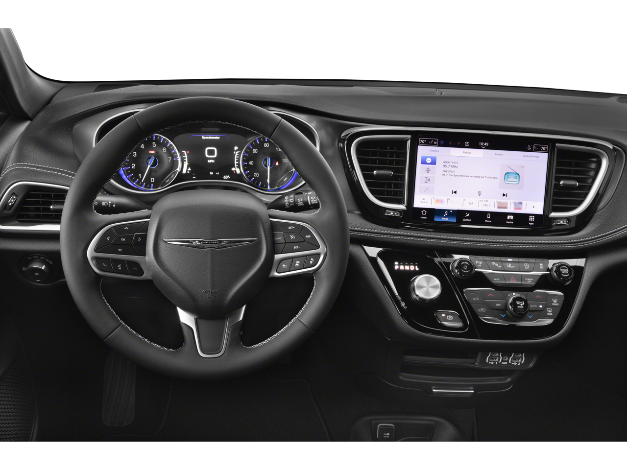 Step inside the Pacifica Select and be greeted by a spacious and well-appointed interior. The Caprice Leatherette Bucket Seats offer premium comfort, while the 10.1-inch touchscreen display with Apple CarPlay and Android Auto integration keeps you connected and entertained. Dual-zone climate control, a power liftgate, and a host of advanced safety features, including Chrysler Connect and ParkView Rear Back-Up Camera, further enhance the driving experience.
